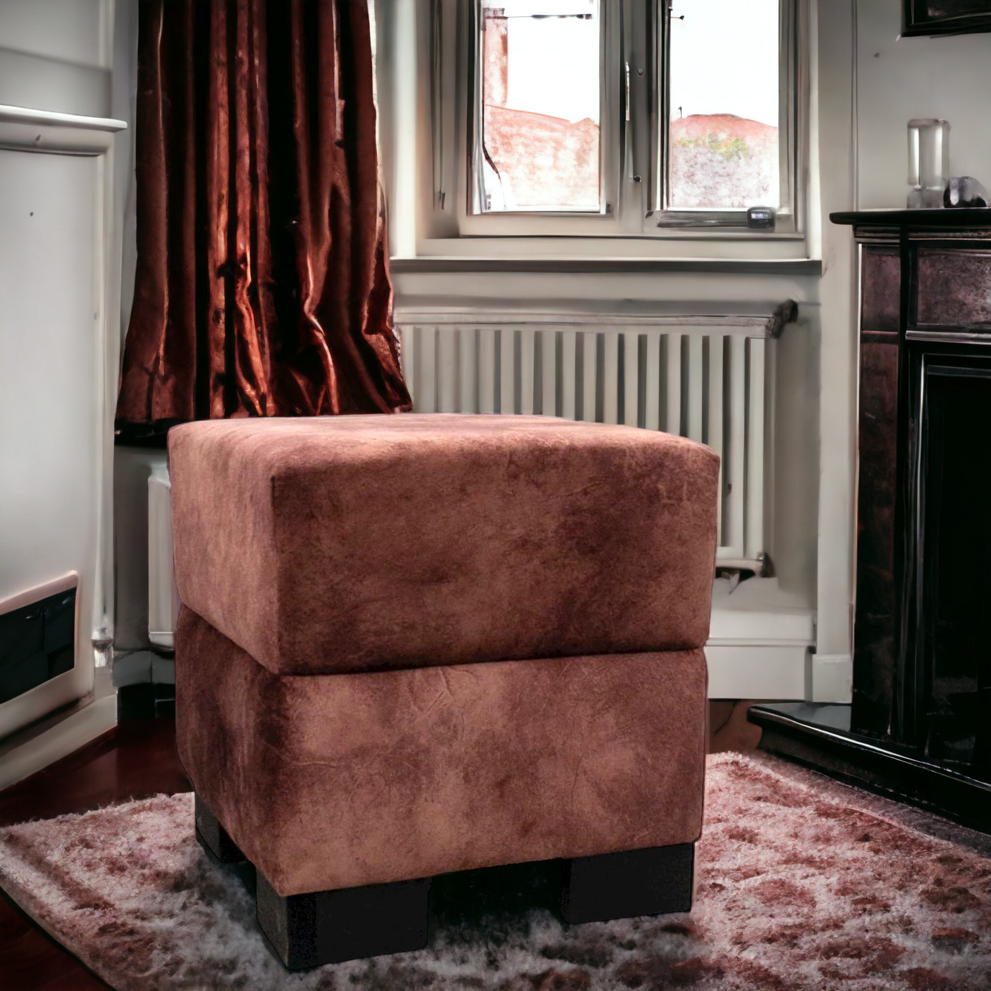 Suryavanshi Velvet Upholstered Pouffe with Wooden Legs – Stylish and Comfortable