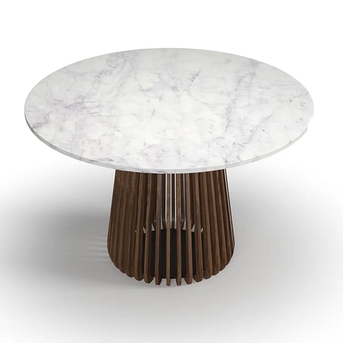 Suryavanshi Westbourne Dining Table - Solid Sheesham Wood with Marble Top Round, Marble & Base Wooden Dining Table 4 Seater, Dining Table, Walnut Finish (1 Table only)