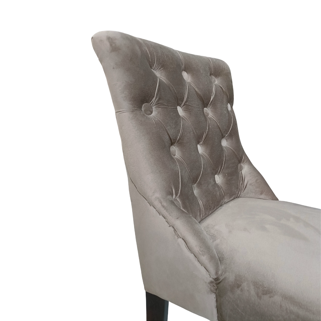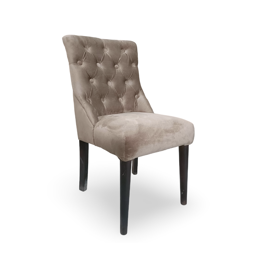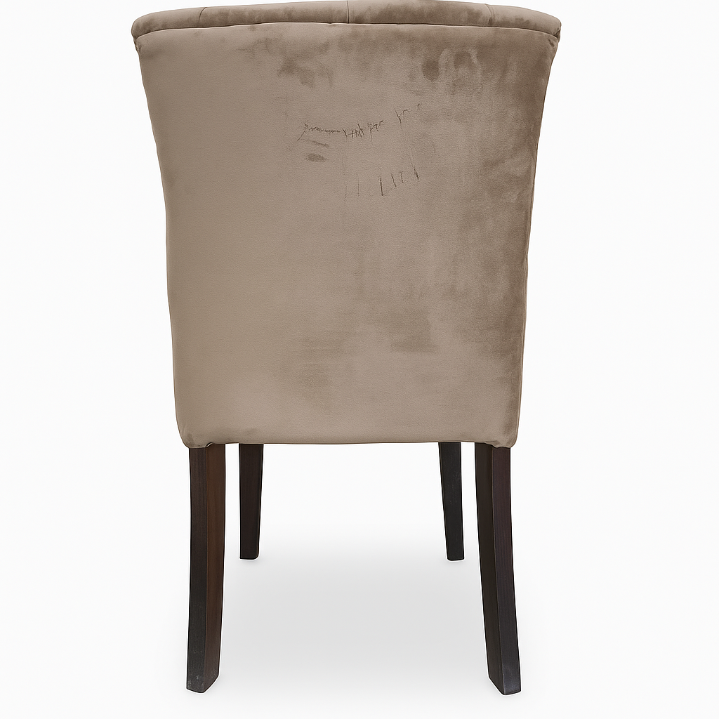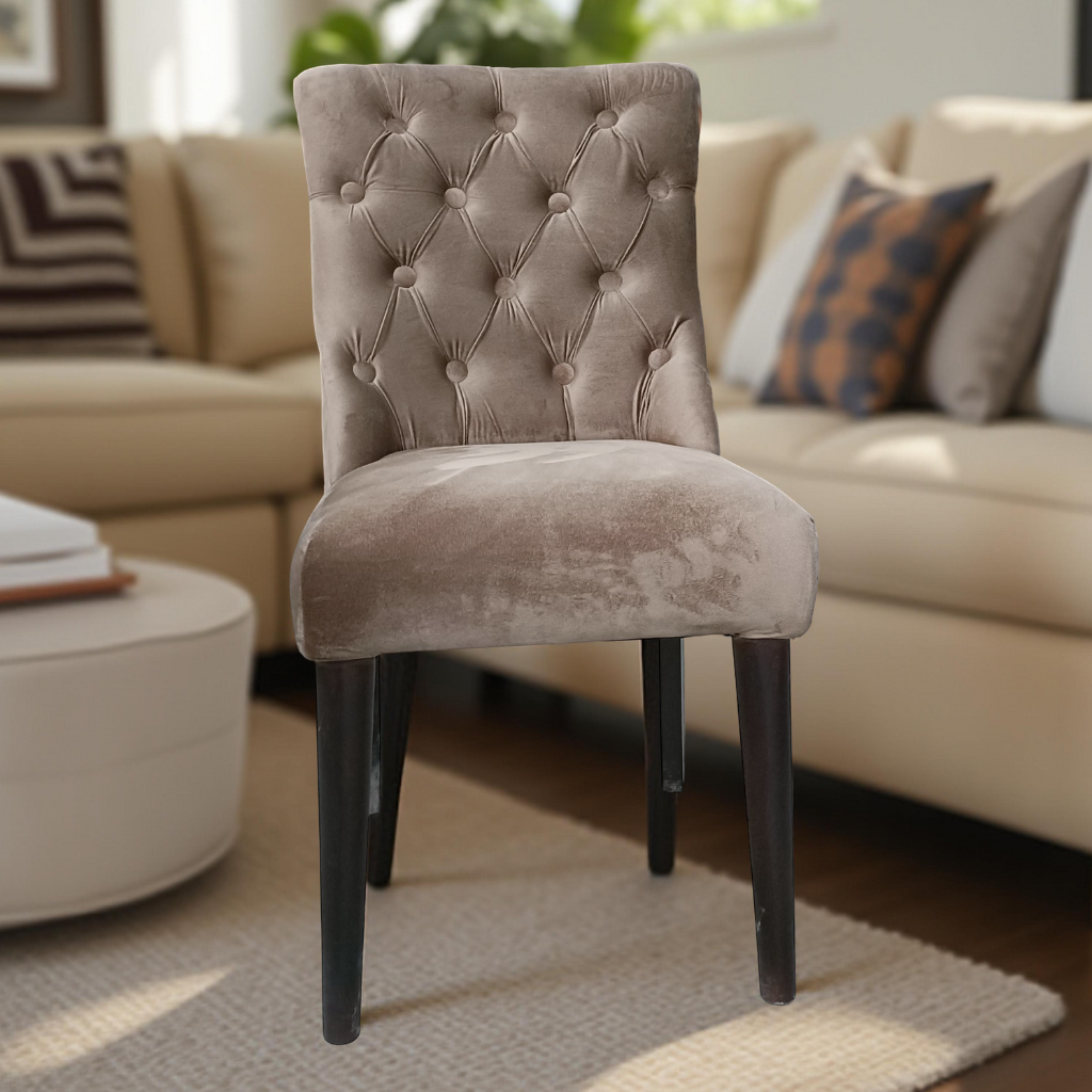 Velvet Upholstered Dining Chair with Button Tufted Backrest – Elegant Accent Chair with Solid Wood Legs for Living Room, Dining Room, or Bedroom – Beige